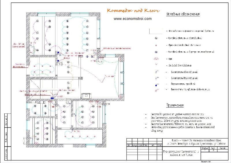 4. Схема расположения осветительных приборов (люстр, светильников, бра, ЛД подстветки) на потолках, на стенах и даже подстветка ступеней лестницы.