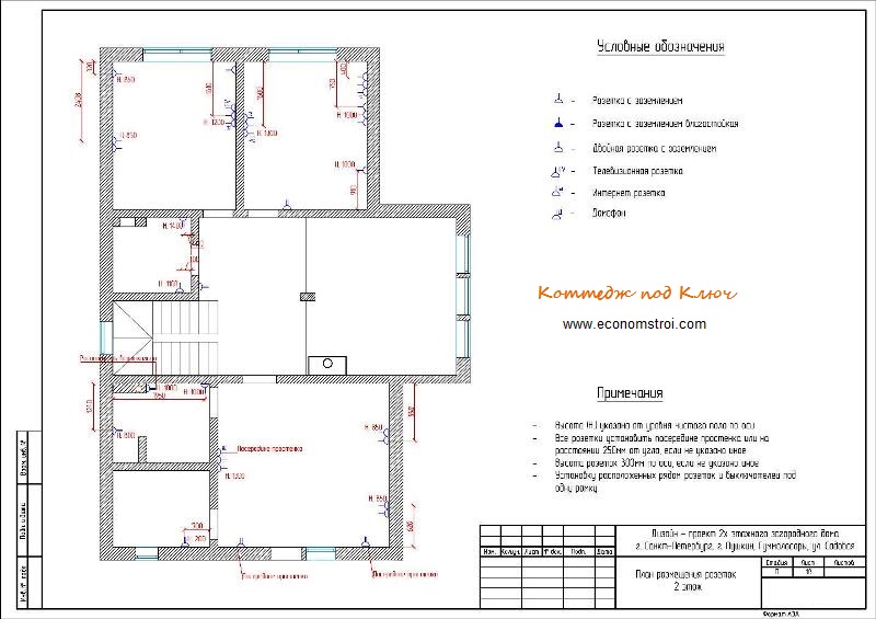 3. Схема расположения розеток показывает максимально функциональное размещение розеток. Они должны быть расположены таким образом, чтобы у заказчика не было необходимости использовать тройники и удлинители, окутывая помещение сетью проводов.