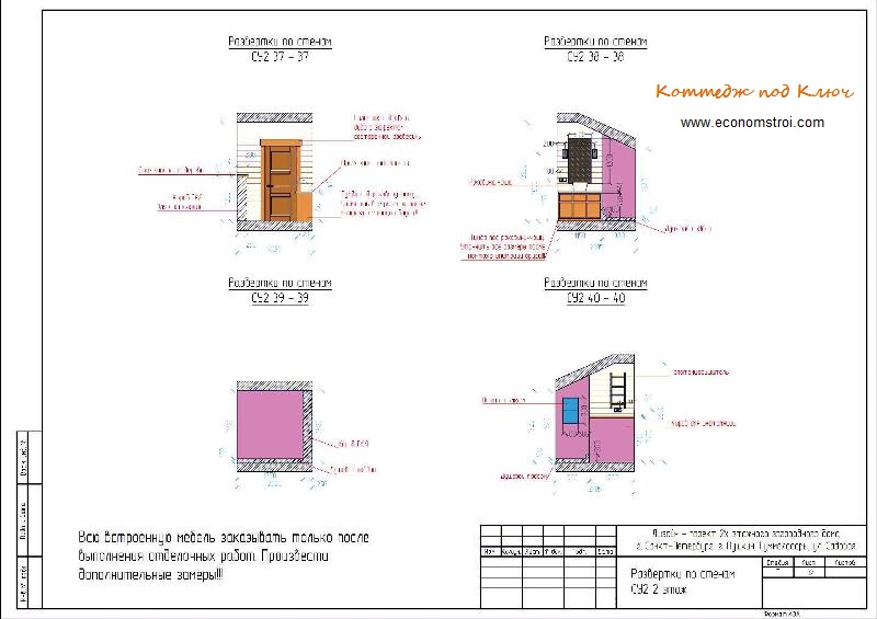 7. Развертка стен с привязкой к окнам или дверям. Данный документ представляет собой план развертки стен, на котором отмечено расположение декоративных элементов, розеток, электроприборов, мебели, при необходимости – сантехники и иных элементов дизайн проекта дома.