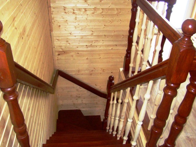 Внутренняя отделка дома сделана за 1,5 месяца, стоимость отделочных работ составила 8 000 руб. за м2 площади дома, отделка дома делалась по индивидуальному дизайн проекту. Внутреннюю отделку в основном сделана деревянной вагонкой (потолки, наружные стены внутри дома и перегородки).