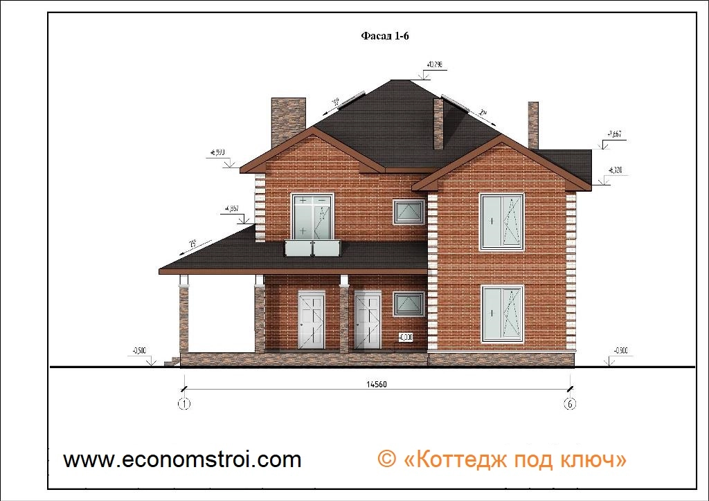 Проект с чертежами и размерами кирпичного дома 220 м2.